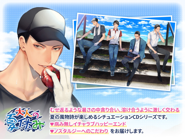 むせ返るような暑さの中貪り合い、溶け合うように激しく交わる夏の風物詩が楽しめるシチュエーションCD音声「大人の夏休み」がひつじぐもより連続4ヶ月でリリース!イチャラブ・胸キュン・ノスタルジーにこだわった本シリーズで、毎日聴きたくなるようなエモいワンシーンをお届けします。