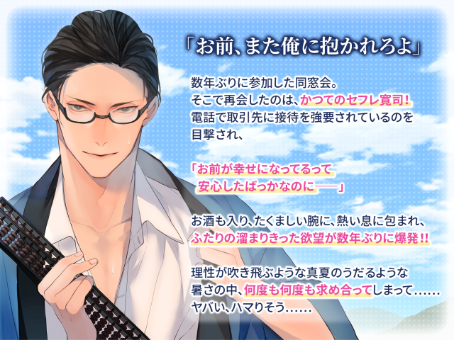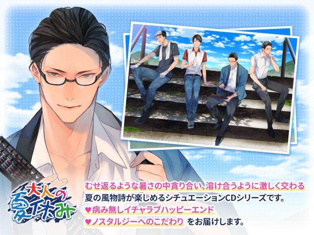 むせ返るような暑さの中貪り合い、溶け合うように激しく交わる夏の風物詩が楽しめるシチュエーションCD音声「大人の夏休み」がひつじぐもより連続4ヶ月でリリース!イチャラブ・胸キュン・ノスタルジーにこだわった本シリーズで、毎日聴きたくなるようなエモいワンシーンをお届けします。